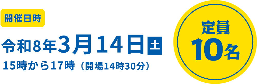 令和8年 3月14日 土 定員 10名 参加料 無料 申込方法
